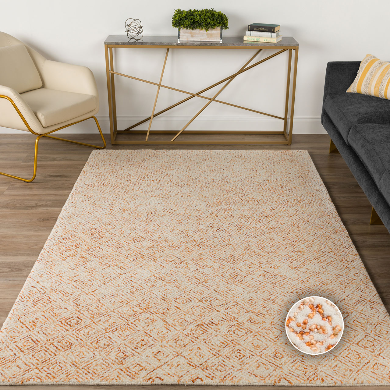 THE ETERNITY COLLECTION Where designing meets functionality! These magnificent carpets are the outcome of incredible craftsmanship that bring together a unique range of hand tufted diamond shaped patterns. They are outstanding in their geometric structuring made from space dyed wool and cut and loop-pile. Always in frenzied demand for generating harmony and regal allure.