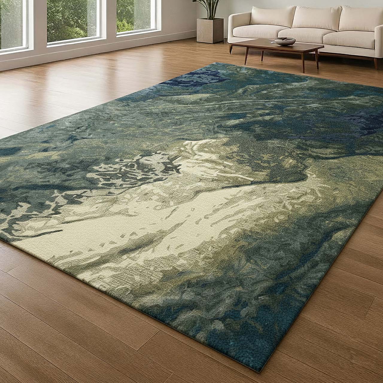 Hand-tufted in a wool, nylon and viscose blend, Mirzapur combines softness, sheen and strength. Sculpted cut, loop and tip-shear finishes add depth, while dotted felt backing enhances comfort and stability. Designed exclusively for refined residential interiors.