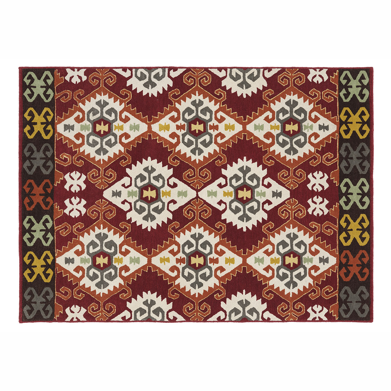 The Unbounded Existence! A rare assortment of Kilims, Ikats & Suzaani, bringing ancient handcrafted art into exquisite patterns that infuse an element of depth and patterned consonance. Structured in intense earthy shades, the pieces are sure conversation starters for those who behold this immaculate conception.