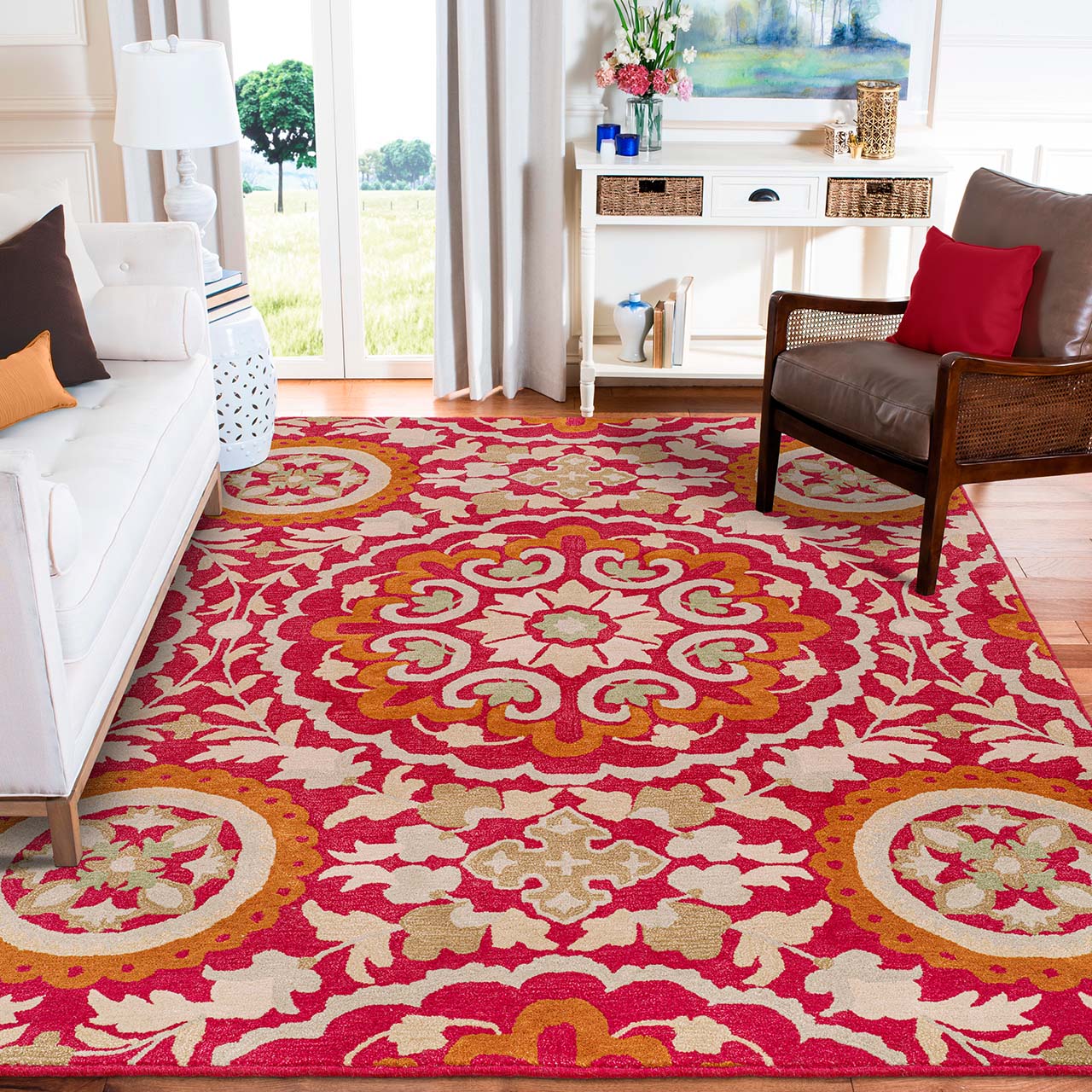 The Unbounded Existence! A rare assortment of Kilims, Ikats & Suzaani, bringing ancient handcrafted art into exquisite patterns that infuse an element of depth and patterned consonance. Structured in intense earthy shades, the pieces are sure conversation starters for those who behold this immaculate conception.