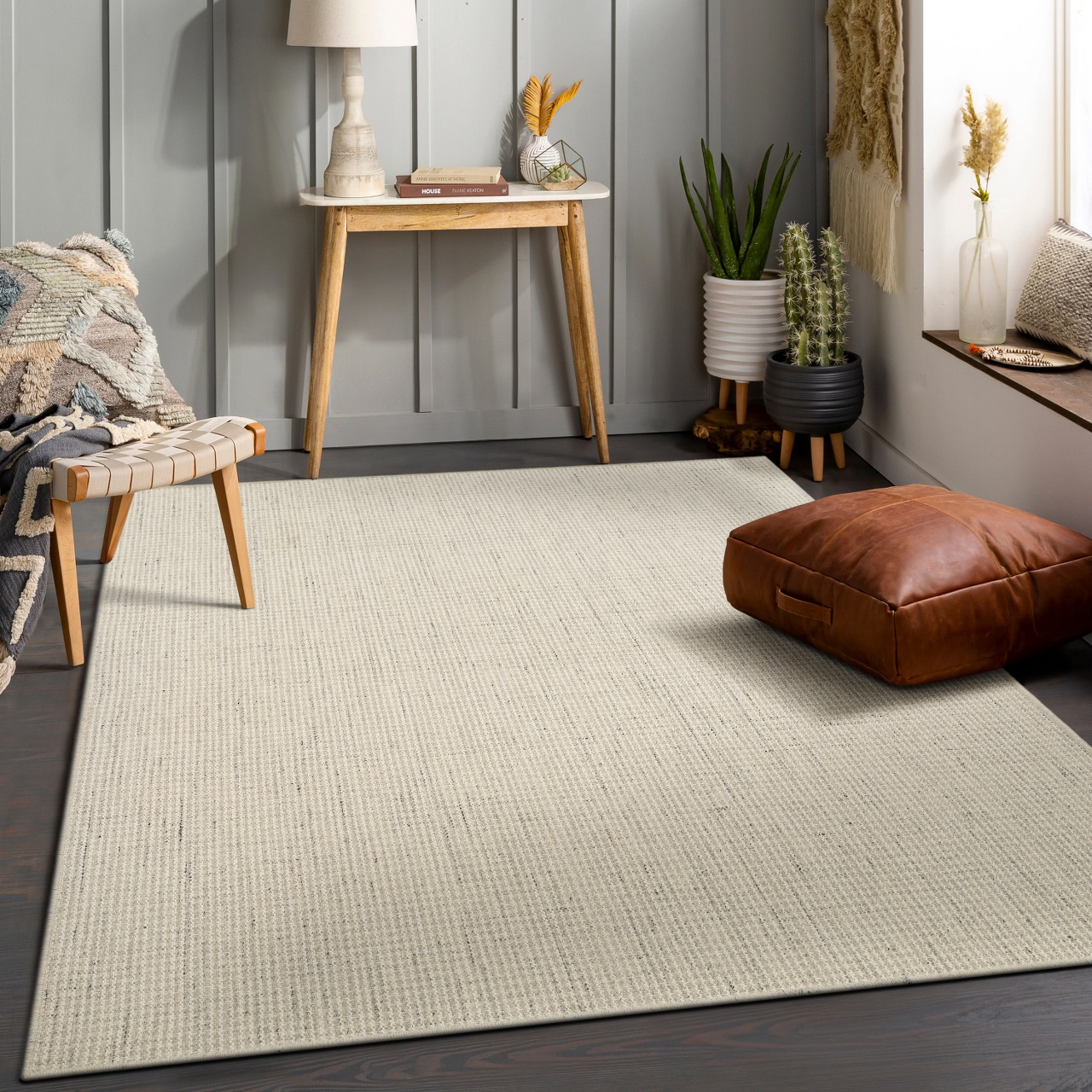 THE BRAID alludes to the moneyed shoreline of the resort island of the same name. Its 100% hand spun natural dyed wool softens the crisply tailored flatweave. A neutral palette of warm and cool colourways is shared with Braid Stripe for easy coordination, and the collection is handmade?in?India.